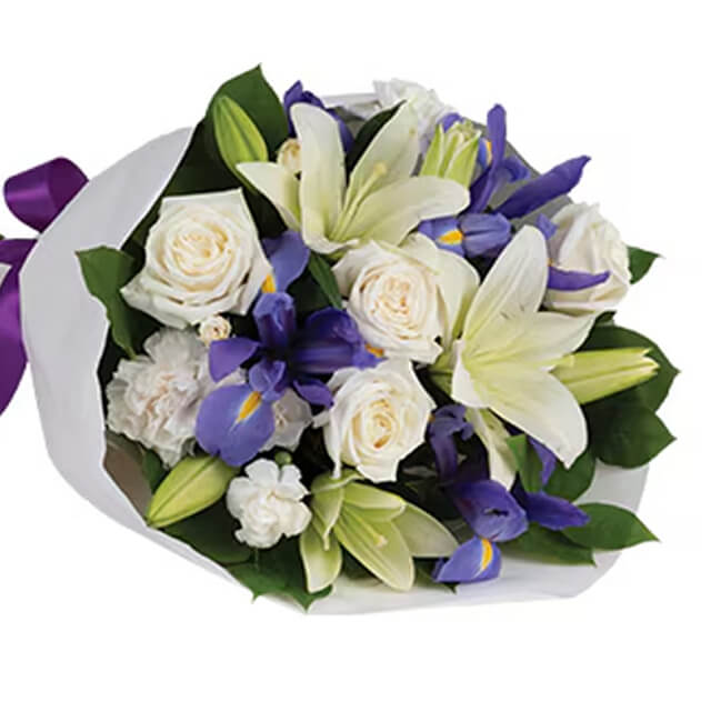 Capture the magic of twilight with this enchanted array of luxurious lilies, roses and iris