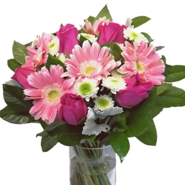 Gerbera and Roses, Fillers and Leaves beautifully arrange in a Vase
