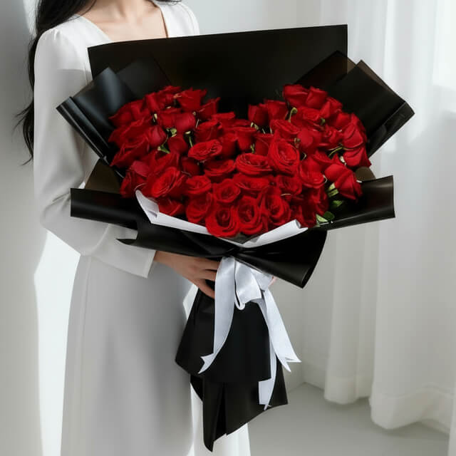 A heart-shaped bouquet of 60 red roses, perfect for weddings, anniversaries, proposals, or romantic moments. This large rose bouquet is ideal to express your deep love.