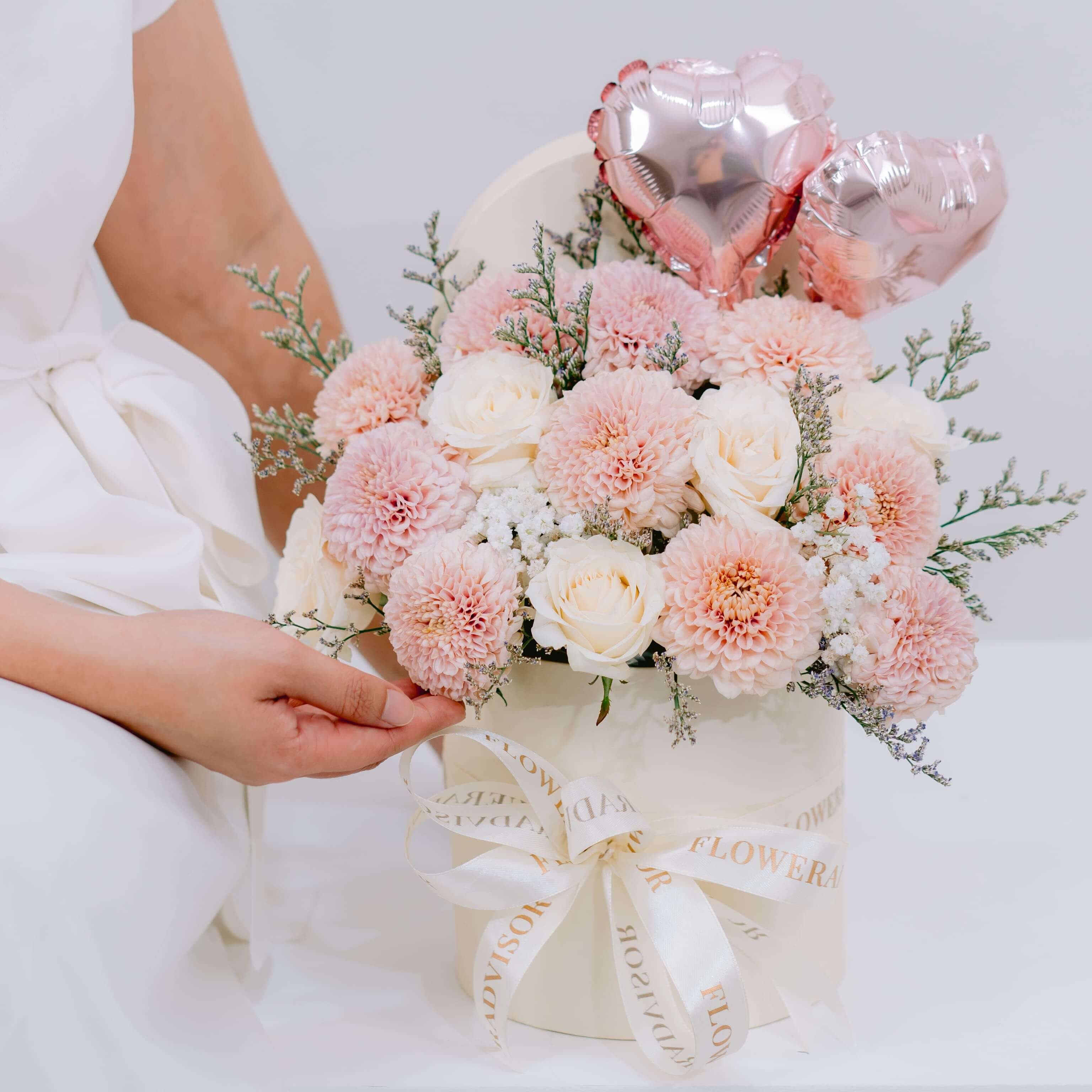 Brand, wrapping, decoration, and packaging may vary. FlowerAdvisor reserves the right to replace any item with another of equivalent value depending on season and availability.