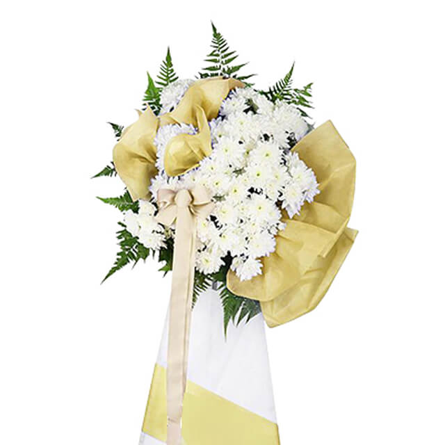 Express your respect and condolences with this classic standing floral arrangement. Each petal and leaf carries your thoughts and heartfelt wishes, offering a tangible expression of sympathy and support.