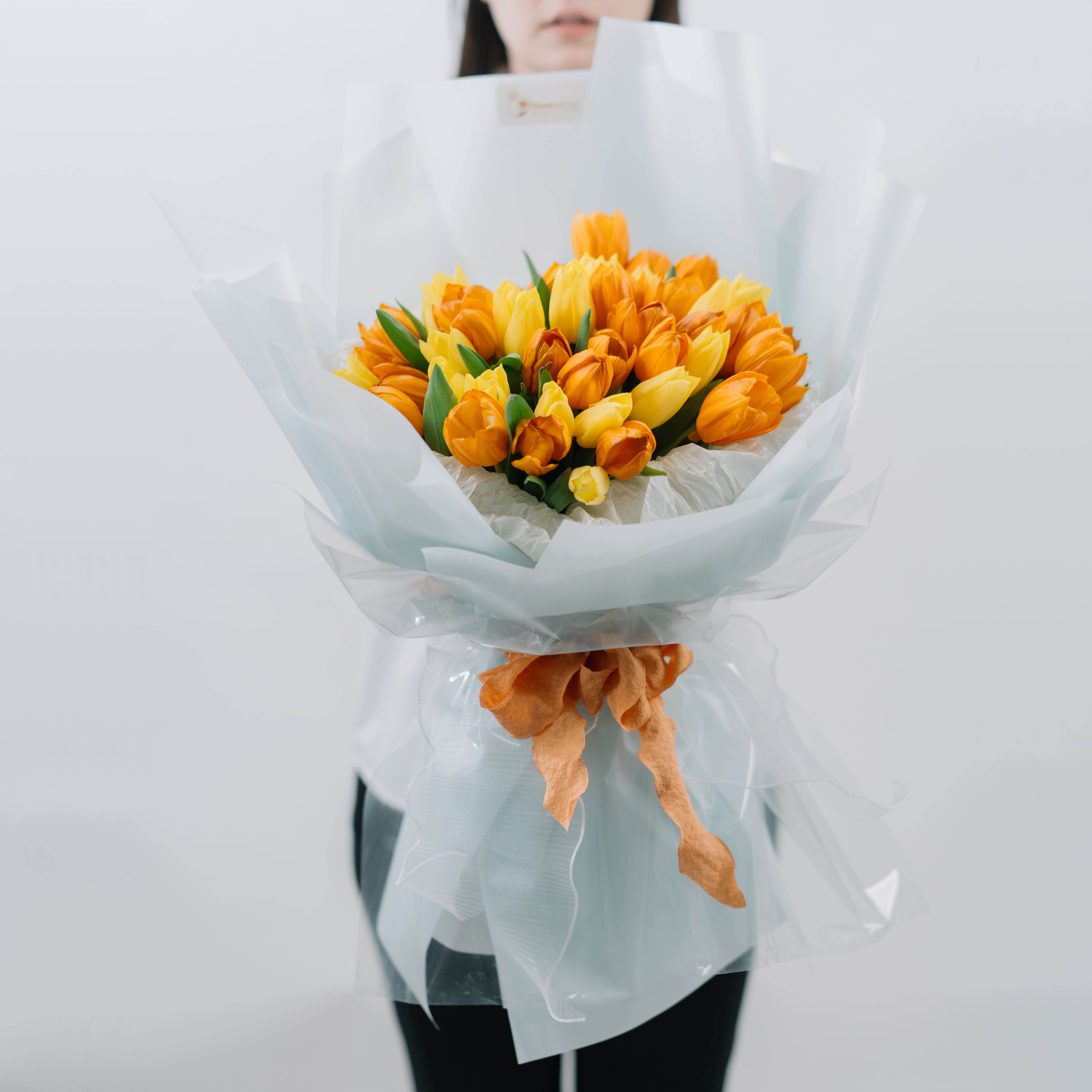 Filled with the radiant charm of yellow and orange tulips, this arrangement radiates warmth and new hope. Like the morning sun greeting a secret garden, Shimmer Tulip Grace is the perfect choice to celebrate moments of love and happiness — from anniversaries and Valentine’s Day to Mother’s Day and graduation days.