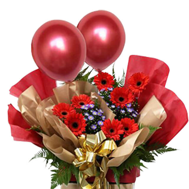 This arrangement consists of - Balloon - Gerbera - Foliage - Estimated Height: 174CM
