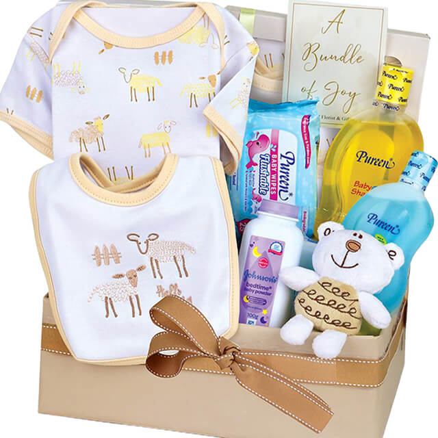Introducing our charming Baby Gift Set! Perfect for welcoming the newest member of your family, this set includes: - Baby Romper - Bib - Toy (Pink/Cream) - Pureen Baby Wipes - Pureen Baby Normal Bath (150ml) - Pureen Baby Normal Shampoo (250ml) - Johnson & Johnson Baby Bedtime Powder (100ml) All neatly packaged in a biodegradable box with lovely decorations.