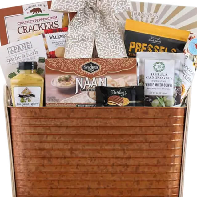 Svadista naan crisps, Tom Clark brown butter kettle corn, Derby's coconut flavored choco waffle, Hamiltion House chocolate cookies, Pressels thin crispy baked pretzel chips, Walkers shortbread cookies, Bella Campagna mixed olives and stone ground mustard will be well received and enjoyed by all.