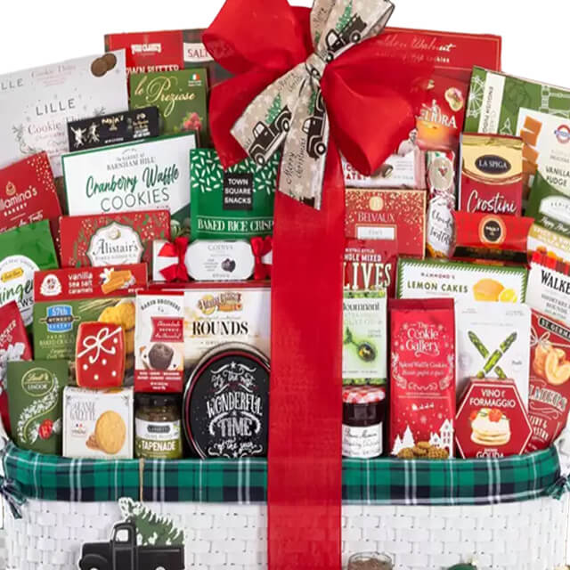 This impressive holiday gift basket is filled with so many gourmet treats, everyone will find something to enjoy.