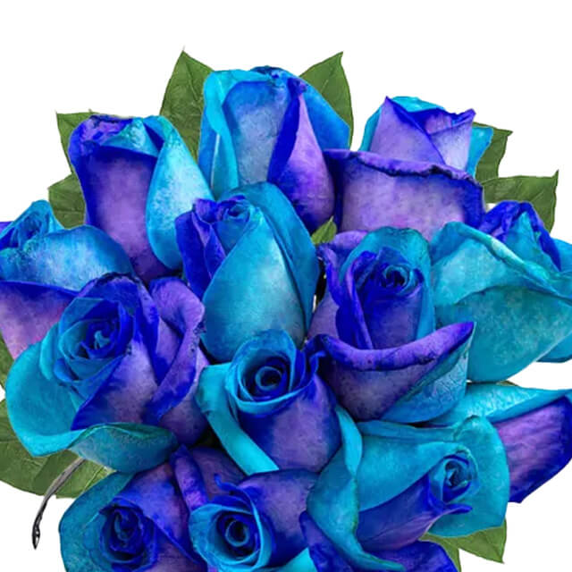 Includes: • One Dozen Dyed Blue Roses • Personalized Card Message • Clear Vase