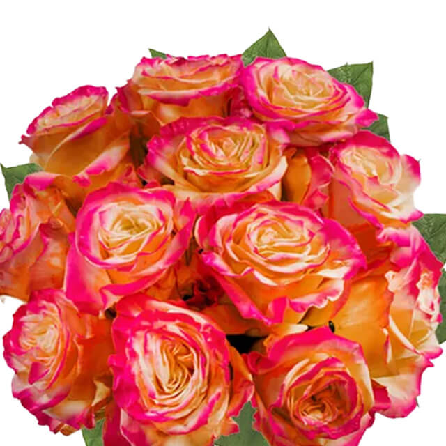Includes: • One Dozen Pink Tinted Roses • Personalized Card Message • Clear Vase