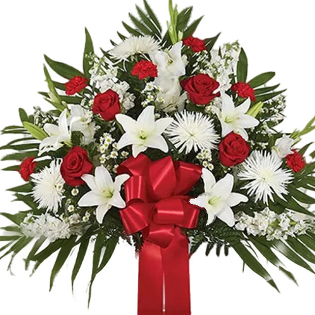 Red & White Sympathy Standing Basket - FA23795