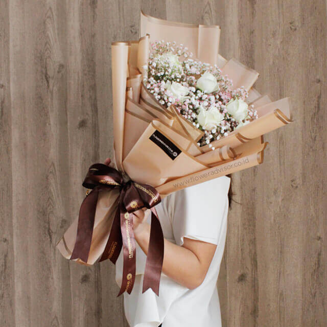 You may hold my hand for a while, but you hold my heart forever. If you are not always this expressive then this gorgeous bouquet of 6 white roses and baby breath flowers will do it for you. This hand-bouquet symbolizes 'Endless- Perfection'. You may not be perfect but your love and this bouquet is!!